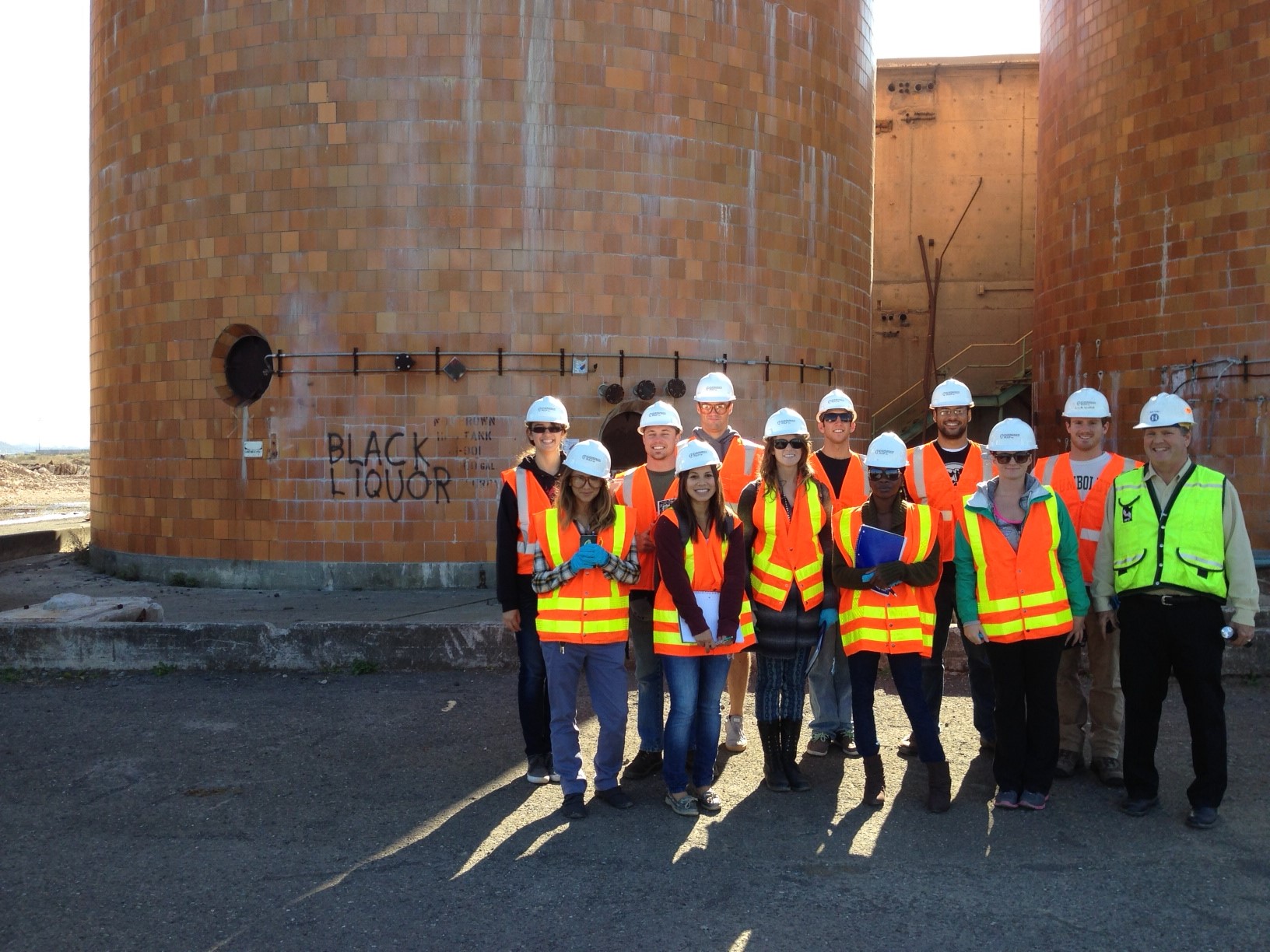 region. Here students visit the site of a former pulp mill that was abandoned a decade ago. They are guided by Jack Crider of the Humboldt Bay Harbor District. In ESM 425, students wrote an EIR for a proposed project to clean up the pulp mill site and to re-purpose the facility for aquaculture and aquaponics businesses.
